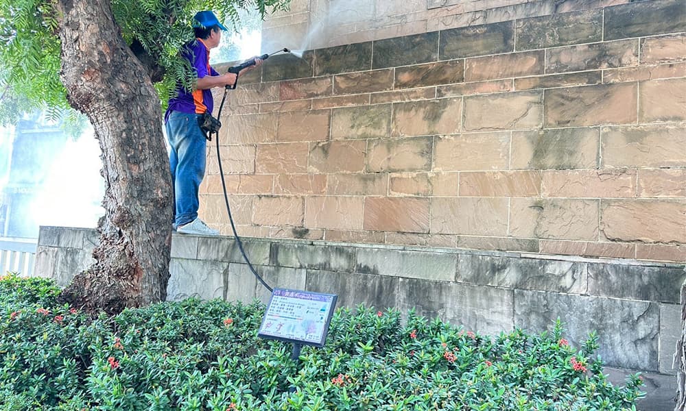 逢甲大學石材招牌清洗